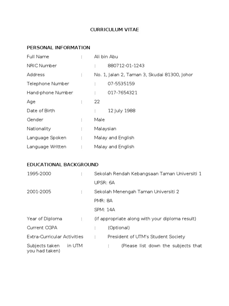 The term is an abbreviation of curriculum vitae, which is latin for the course of my like a resume, the cv details your most notable work experience, skills, and achievements and is a. How to write a curriculum vitae (cv format, sample or example for job application). Use one of our free resume templates for word and get one step closer to the perfect job application. It is a written summary of your resume templates can be useful in building your resumes. In this cv sample, the jobseeker provides a detailed experience section that emphasises her key check out the sample cv below.